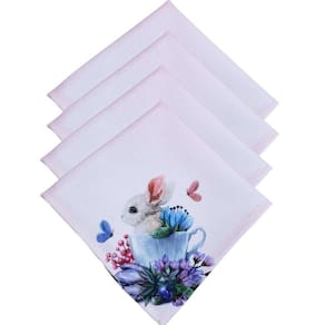 Kit 4 guardanapo de tecido coelho da páscoa a la pom pom 40cmx40cm Cor: rosa Material O guardanapo é tecido de poliéster oxford com impressão digital dequalidade superior. Este tecido não desbota e pode ser lavado na máquina de lavar.