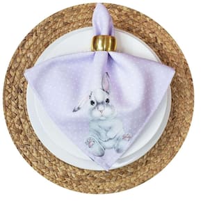 Kit 4 guardanapos de tecido coelho da páscoa e lavanda 40cmx40cm Cor: roxo