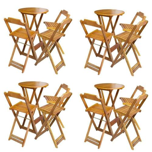 Kit 4 Jogos De Mesa Bistrô De Madeira Dobrável Com 3 Banquetas - Mel