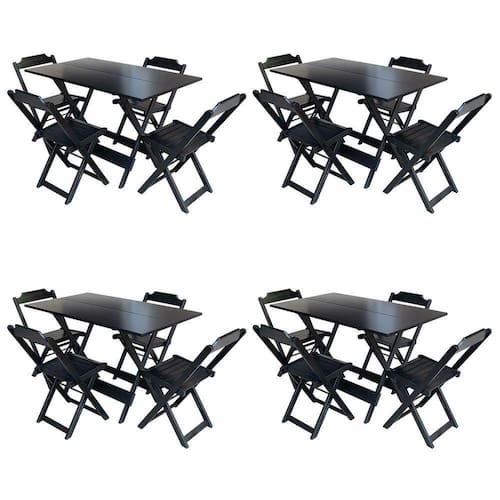 Kit 4 Jogos De Mesa Com 4 Cadeiras De Madeira Dobravel 120X70 - Preto - Preto