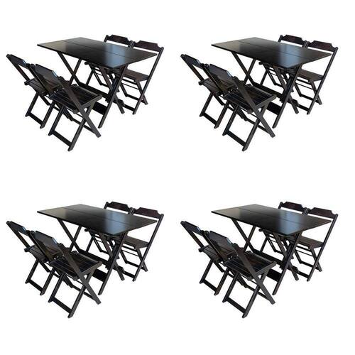 Kit 4 Jogos De Mesa Com 4 Cadeiras De Madeira Dobravel 120X70 - Tabaco - Marrom