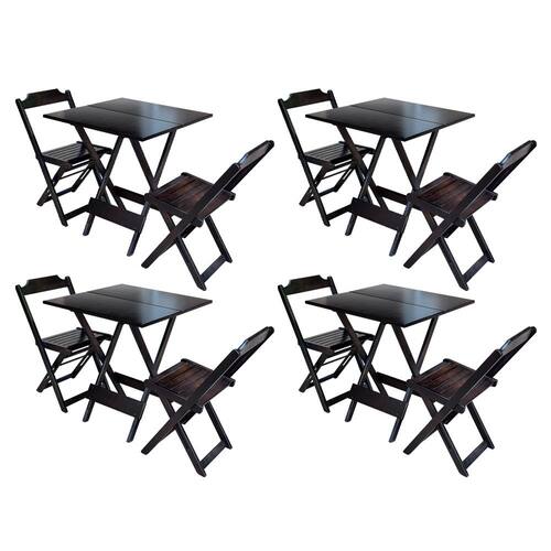Kit 4 Jogos de Mesa Dobravel com 2 Cadeiras de Madeira 70x70 Ideal para Bar e Restaurante - Tabaco - Marrom