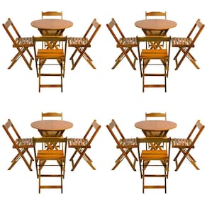 Kit 4 Jogos De Mesa Dobravel Com 4 Cadeiras Tampo Redondo 70x70 Caramelo