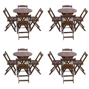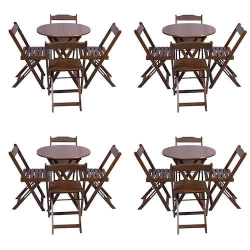 Kit 4 Jogos De Mesa Dobravel Com 4 Cadeiras Tampo Redondo 70x70 Imbuia