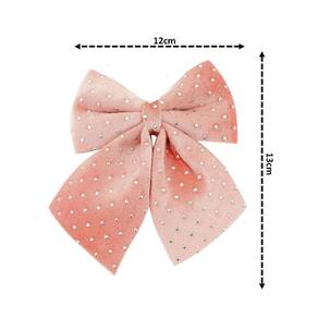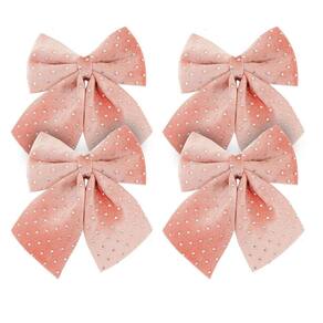 -04 unidades Laço Decorativo Natal Espuma Veludo Rosê Decorado Bolinhas Prata 12x13cm – Magizi