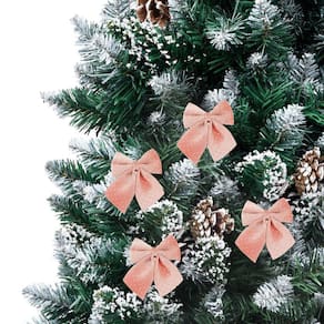 Transforme este Natal em um evento brilhante e elegante com nossos Laços Decorativos de Espuma Veludo Rosê e Bolinhas Prata!