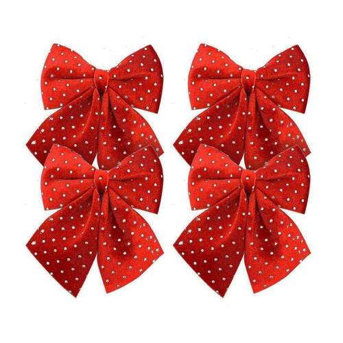 -04 unidades Laço Decorativo Natal Espuma Veludo Vinho Decorado Bolinhas Prata 12x13cm Magizi