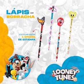 Kit 4 Lápis Hb Com Borracha Escolar Looney Tunes Leo & Leo