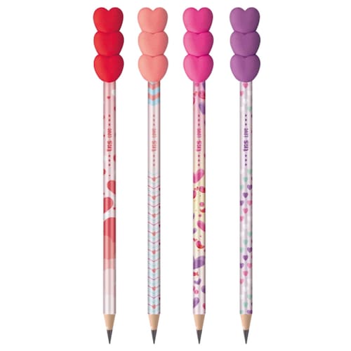 Kit 4 Lápis Preto HB Com Topper Borracha Love Coração Tris