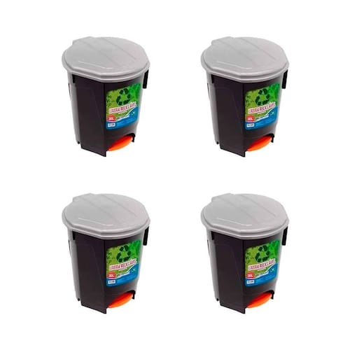 Kit 4 Lixeiras 30 Litros Multiuso Com Pedal Preta Arqplast