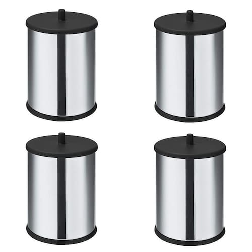 Kit 4 Lixeiras em Inox 3,2 Litros com Tampa Simples e Fundo Preto Linha Home Cor Preto - Martinazzo