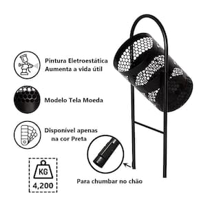 A lixeira redonda suspensa é super-resistente, fabricada em tela de moeda com acabamento em pintura eletrostática, tem um exclusivo suporte de tubo 3/4 para manter a lixeira suspensa. Muito versátil e prática além de ser muito resistente e de alta qualidade. O uso das lixeiras é essencial em lugares onde há uma intensa quantidade de pessoas. Em locais assim é importante utilizar as lixeiras para o descarte de resíduos, orgânicos ou não, para manter a ordem e a higiene.