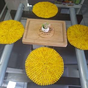 Kit 4 Lugares Americanos de Madeira Redondo, Porta Pratos, Sousplat Amarelo