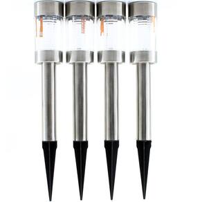 Kit 4 Luminária Solar Luz De Led Para Jardim Cromado -