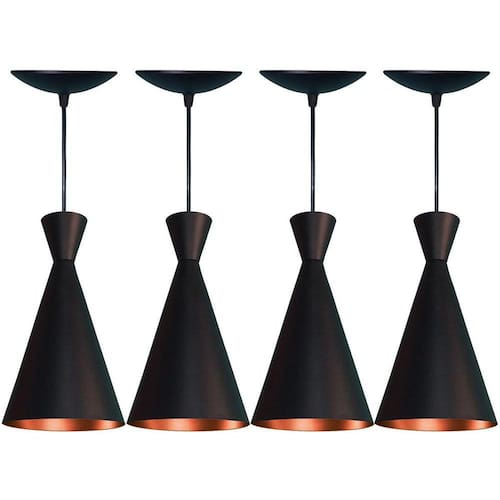 O Kit 4 Lustres Pendente Cone Estilo Dixon Preto Fosco/Cobre é perfeito para incrementar a sua decoração e dar um toque especial ao seu ambiente. Sua estrutura traz mais modernidade, elegância e sofisticação para a sua decoração. Esse produto deixará seu cômodo com uma iluminação fantástica. Afinal, um ambiente agradável conta sempre com uma boa iluminação que traga mais vida e aconchego para o ambiente, além de valorizar os detalhes da decoração.Anúncio referente ao kit de 4 luminárias.Luminária Pendente Cone Venturi, fabricada em alumínio, material altamente resistente ao tempo.Luminária composta por cabo PP com 1 metrô de comprimento tamanho ajustável , soquete E-27, canopla e cúpula em alumínio.Luminária ideal para ambientes internos, utilizada em salas de estar, cozinhas, salas de jantar, área gourmet entre outras.Ilumine e decore o seu lar com nossas lindas luminárias. Deixe a imaginação tomar conta.Lindo pendente para quem gosta de um ambiente com estilo e bem iluminado.Especificações Técnicas:Material: Alumínio não enferruja Medidas: 15 cm diâmetrô x 33 cm altura mais 1.00 m de caboAltura aproximada montada: 1,33 m Altura ajustável Soquete: E-27 compatível com lâmpada comum ou LED Voltagem: Bivolt 127/220 v Não acompanha: LâmpadaCor Externa: Preto FoscoCor Interna: CobreGarantia: 3 meses de garantia contra defeitos de fabricação. Marca: Estillo & luz