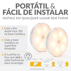 Kit 4 Luzinha Momo Lifestyle - Luminária LED com sensor de presença e fotocélula, carregável USB Você aparece, ela acende A Luzinha Momo Lifestyle foi desenvolvida para facilitar sua rotina, pare de procurar os interruptores no escuro. Nossa Luzinha possui luz aconchegante amarelada 0,5w que se ascende no escuro através de sensor de movimento, com alcance de até 4m, por um período de 20 segundos e depois se apaga automaticamente. O melhor de tudo é que ela não precisa estar conectada na energia elétrica e nem de pilhas que geram resíduos ao meio ambiente, a Luzinha possui uma bateria recarregável via USB de 400 mAH, dependendo do uso uma carga dura até 2 meses. Para fixá-la, basta colar o suporte metálico com a fita adesiva 3M acompanha o produto na superfície desejada e pronto Nossa Luzinha é magnética e pode ser facilmente removida. Ideal para corredores, quartos, armários e escadas. Vantagens da Luzinha Momo Lifestyle: Alto Alcance Identificação de movimento num raio de 3 a 4 metros, basta se aproximar e pronto A Luzinha se ascenderá automaticamente e se apagará após 20 segundos. Portátil Aplicável em todos os locais, acompanha o suporte magnético e um adesivo 3M. O melhor é que você pode mudá-la de lugar quando quiser sem depender de tomadas. Automática Ela se aciona sozinha quando tiver movimento no escuro e se desliga após 20 segundos. Bateria potente e recarregável USB Nossa Luzinha possui uma bateria de 400 mAH capaz de durar de 1 a 2 meses com apenas uma carga de 2 horas. É recarregável via USB, assim como um celular, acompanha o cabo USB. Conteúdo da Embalagem 1 Luminária Luzinha 1 Cabo USB 1 Manual de instrução 1 Suporte metálico 1 Adesivo dupla-face 3M Controle & Funções OFF - Desligado. WW - Luz branca quente. No ambiente escuro, quando houver detecção de movimento, a Luzinha liga automaticamente e se desliga após 20 segundos. No ambiente com luminosidade, não liga automaticamente. CW - Luz branca fria. No ambiente escuro, quando houver detecção de movimento, a Luzinha liga automaticamente e se desliga após 20 segundos. No ambiente com luminosidade, não liga automaticamente. Especificações Técnicas Potência: 0,5 W Temperatura da Cor: 3000K e 6000K Vida útil do LED: 50.000 horas Duração da Bateria Carregável: depende do uso, em média 2 meses, 60 dias. Temperatura de trabalho: -10ºC a 40ºC Distância de detecção: 3 a 4m direção frontal - 2 a 3m direção lateral Somos uma marca 100% brasileira, de Florianópolis e que busca facilitar o seu dia-a-dia, para isso desenvolvemos produtos inovadores, seguros e modernos. Hoje, a marca é amada no país e já está presente em lares de mais de 3.000 cidades Brasileiras. Nossa equipe especializada está pronta para auxiliar você em caso de dúvidas, via WhatsApp, telefone e até mesmo por vídeo assistência. Todos os produtos Momo Lifestyle possuem 12 meses de . 9 meses da marca Momo Lifestyle + 3 meses pela lei brasileira