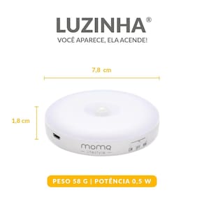 Kit 4 Luzinha Momo Lifestyle - Luminária LED com sensor de presença e fotocélula, carregável USB Você aparece, ela acende A Luzinha Momo Lifestyle foi desenvolvida para facilitar sua rotina, pare de procurar os interruptores no escuro. Nossa Luzinha possui luz aconchegante amarelada 0,5w que se ascende no escuro através de sensor de movimento, com alcance de até 4m, por um período de 20 segundos e depois se apaga automaticamente. O melhor de tudo é que ela não precisa estar conectada na energia elétrica e nem de pilhas que geram resíduos ao meio ambiente, a Luzinha possui uma bateria recarregável via USB de 400 mAH, dependendo do uso uma carga dura até 2 meses. Para fixá-la, basta colar o suporte metálico com a fita adesiva 3M acompanha o produto na superfície desejada e pronto Nossa Luzinha é magnética e pode ser facilmente removida. Ideal para corredores, quartos, armários e escadas. Vantagens da Luzinha Momo Lifestyle: Alto Alcance Identificação de movimento num raio de 3 a 4 metros, basta se aproximar e pronto A Luzinha se ascenderá automaticamente e se apagará após 20 segundos. Portátil Aplicável em todos os locais, acompanha o suporte magnético e um adesivo 3M. O melhor é que você pode mudá-la de lugar quando quiser sem depender de tomadas. Automática Ela se aciona sozinha quando tiver movimento no escuro e se desliga após 20 segundos. Bateria potente e recarregável USB Nossa Luzinha possui uma bateria de 400 mAH capaz de durar de 1 a 2 meses com apenas uma carga de 2 horas. É recarregável via USB, assim como um celular, acompanha o cabo USB. Conteúdo da Embalagem 1 Luminária Luzinha 1 Cabo USB 1 Manual de instrução 1 Suporte metálico 1 Adesivo dupla-face 3M Controle & Funções OFF - Desligado. WW - Luz branca quente. No ambiente escuro, quando houver detecção de movimento, a Luzinha liga automaticamente e se desliga após 20 segundos. No ambiente com luminosidade, não liga automaticamente. CW - Luz branca fria. No ambiente escuro, quando houver detecção de movimento, a Luzinha liga automaticamente e se desliga após 20 segundos. No ambiente com luminosidade, não liga automaticamente. Especificações Técnicas Potência: 0,5 W Temperatura da Cor: 3000K e 6000K Vida útil do LED: 50.000 horas Duração da Bateria Carregável: depende do uso, em média 2 meses, 60 dias. Temperatura de trabalho: -10ºC a 40ºC Distância de detecção: 3 a 4m direção frontal - 2 a 3m direção lateral Somos uma marca 100% brasileira, de Florianópolis e que busca facilitar o seu dia-a-dia, para isso desenvolvemos produtos inovadores, seguros e modernos. Hoje, a marca é amada no país e já está presente em lares de mais de 3.000 cidades Brasileiras. Nossa equipe especializada está pronta para auxiliar você em caso de dúvidas, via WhatsApp, telefone e até mesmo por vídeo assistência. Todos os produtos Momo Lifestyle possuem 12 meses de . 9 meses da marca Momo Lifestyle + 3 meses pela lei brasileira