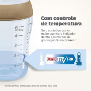 Kit 4 mamadeiras perfect match com controle de temperatura 2x 150ml fluxo lento, 2x 260ml fluxo médio + 2 bicos fluxo variável u - nuk As mamadeiras nuk perfect match kit com 4 unidades, são 2 mamadeiras de 150ml com bicos de fluxo lento, 2 mamadeiras de 260ml com bicos de fluxo médio e mais 2 bicos de fluxo variável u . Todas possuem junto ao marcador de graduação do frasco o novo indicador de controle de temperatura. Se o conteúdo estiver muito quente, acima de 37º, o indicador de temperatura ficará branco, aguarde o indicador voltar a cor azul para oferecer a mamadeira. Seu bico em silicone antivazamento conta com sistema de ventilação que reduz a formação e ingestão de bolhas de ar durante a alimentação. O ministério da saúde adverte: a criança que mama no peito não necessita de mamadeira, bico ou chupeta. O uso de mamadeira, bico ou chupeta prejudica o aleitamento materno. Principais características: - modelo: perfect match - capacidade: 2x 150ml fluxo lento, 2x 260ml fluxo médio + 2 bicos tamanho e fluxo variável u - bico tamanho: 0m+/ 3m+/ 6m+ - fluxo variável - indicador de controle de temperatura - escala volumétrica - bico em silicone macio e flexível - antivazamento - tampa protetora higiênica - frasco com formato ergonômico - fácil de usar e limpar - livre de bpa Especificações técnicas: - conteúdo da embalagem: kit com 4 mamadeiras perfect match 2x 150ml fluxo lento, 2x 260ml fluxo médio + 2 bicos tamanho e fluxo variável u 0m+/ 3m+/ 6m+ nuk - dimensões: 0,27 x 0,20 x 0,27 largura x altura x comprimento - peso: 0,315g - composição/material: polipropileno e silicone - : 30 dias contra defeito de fabricação pelo fabricante - certificação: ce-pur /iqb-000632 - código do fabricante: 20200081 - ean: 7896098815328 - marca: nuk Imagens meramente ilustrativas, as cores e estampas podem variar de acordo com o lote do fabricante. Homologação Inmetro: IP-BRI-1544/2021-10 Marca: Não Informado