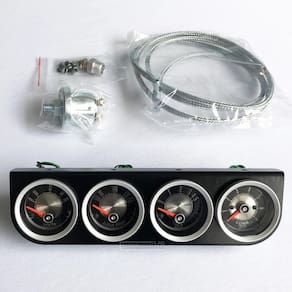 Kit com 4 Manômetros Modelo Elétrico Injeção para Ford Maverick com Layout Retrô. Composição do kit: Manômetro voltímetro; Manômetro temperatura de água elétrico; Manômetro pressão de óleo elétrico; Manômetro pressão de combustível mecânico para injeção; Todos os manômetros acompanham luz de led verde; Kit de instalação AEROQUIP para pressão de combustível; Sensor e adaptador para temperatura de água elétrico; Sensor para pressão de óleo elétrico; Acompanha moldura e parafusos de fixação; Manual de instalação com informações; Mostradores são fabricados em CNC com material inox; Disponível somente no tamanho de 52mm com aro prata; Alto padrão de acabamento. Recomendamos que a instalação seja realizada por um profissional qualificado. : 3 meses Marca: PerformanceV8 Ean: 7999603057616