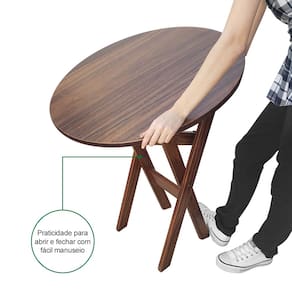 Tipo: Mesa Dobrável Modelo: Redondo Cor: Imbuia Estrutura: Base em madeira maciça de alta resistência. Tampo: MDF com acabamento de alta qualidade.