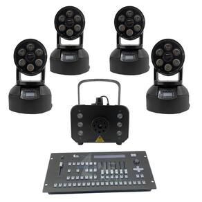 Kit 4 mini moving wash + máquina de fumaça 1200w + mesa pilot