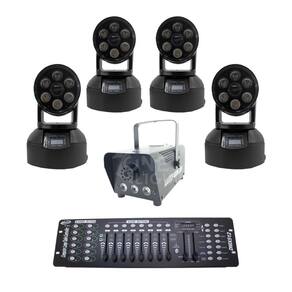 Kit 4 mini moving wash + máquina de fumaça 600w + mesa dmx 512