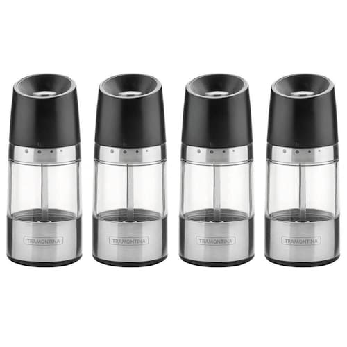 Kit 4 Moedor Sal Grosso Pimenta Tramontina Manual Inox Especiarias Realce Preto.
