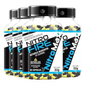 Nitro Fire Cafena 420mg 60 cpsulas Nitromax Kit 4 potes Composio: Cafena, riboflavina, excipiente .S.P estearato de magnsio. Apresentao: Pote com 60 cpsulas. Sugesto de uso: Ingerir 1 cpsula ao dia. Conservao: Aps aberto, manter a embalagem bem fechada e armazenar em local fresco e ao abrigo de luz. Produto lacrado para sua proteo. No utilizar em caso de violao. Manter fora do alcance de crianas. produto dispensado de Registro conforme RDC 27/2010. Marca: Não Informado