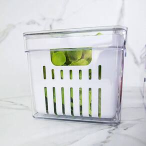 Kit 4 Organizadores de Geladeira Porta Frutas Legumes Ovos Clear Fresh OU. Garantia: 90 dias / Peso: 1900g / Cores: Natural e Branco / Ref: KITGELADEIRA Dimensões Porta Verduras/folhas: 30cm (C) x 15cm (L) x 13cm (A) Dimensões Área De Uso: 28m (C) x 14cm (L) x 12,5cm (A) Capacidade: 5 Litros. Dimensões Porta Frutas: 30cm (C) x 15cm (L) x 7cm (A) Dimensões Área De Uso: 28m (C) x 14cm (L) x 6,5cm (A) Capacidade: 2,8 Litros Dimensões Porta Legumes: 30cm (C) x 15cm (L) x 13cm (A) Dimensões Área De Uso: 28m (C) x 14cm (L) x 12,5cm (A) Dimensões do Cesto De Drenagem: 27cm (C) x 13,5cm (L) x 11,5cm (A) Capacidade: 5 Litros. Dimensões Porta Ovos: 30cm (C) x 15cm (L) x 7cm (A) Capacidade: 18 Ovos. Limpeza e Cuidados: - Lavar com água e sabão neutro utilizando esponja macia, seguido de pano seco; - Não utilizar produtos químicos ou abrasivos na limpeza. Evitar batidas. Material: - Polipropileno: Material com alta resistência a impactos e ao calor. Não transfere odor, nem gosto aos alimentos. Atóxico, pode entrar em contato com alimentos. Resistência à água fervente, suportando até 150° C; - Poliestireno: Material translúcido com baixa Resistência a impactos. Ótima transparência e alto brilho. Não transfere odor, nem gosto aos alimentos. Atóxico, pode entrar em contato com alimentos Ideal para organizar verduras, legumes, vegetais, frutas e ovos e facilitar seu dia a dia o kit de organizadores é confeccionado em material transparente de alta qualidade e livre de BPA, as caixas organizadoras de plástico possuem tampa e podem ser levadas a geladeira. OF300NT e OF350NT e OF200NT e OF100