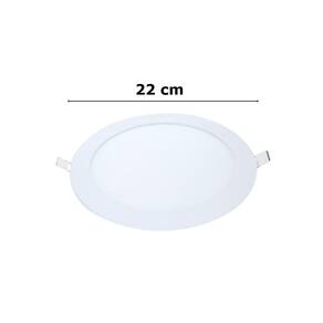 Informações técnicas: LED integrado Potência: 18W Temperatura: 4000K Emissão de luz neutra Diâmetro: 22 cm Forma: Redondo Lúmens: 1260 IRC: =70 Ângulo de abertura: 120 Material: Corpo em alumínio, difusor em vidro, corpo do driver em plástico Eficiência luminosa: 70lm/W Painel de embutir Vida útil: 25 mil horas L70 Pode ser ligado diretamente na rede elétrica em 127V ou 220V Espessura do forro deve ser pelo menos 1cm Não permite dimerização