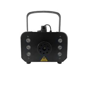Máquina de fumaça fog machine de 1200w com iluminação de 6 leds rgb e 1 watt de potência em cada led mais controle remoto sem fio e com fio.