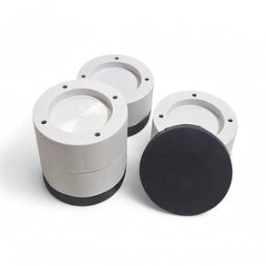 Principais Características:- Composição: Polipropileno (PP) + PVC ível- Diâmetro interno: 4,5 cm- Altura por unidade: 4 cm- Suporta até: 115 kg- Base antiderrapante que reduz vibração e ruídos- com máquinas de lavar, secadoras, geladeiras, fogões, sofás e móveis diversos- Recurso de empilhamento: permite aumentar a altura comprando kits adicionais- Fácil instalação e uso imediato- Protege o piso contra riscos e marcas indesejadas