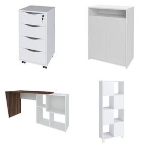 Transforme seu ambiente de trabalho com o Kit 4 Peças que oferece a perfeita combinação de estilo e funcionalidade. A Escrivaninha Moderna proporciona uma superfície elegante e prática, ideal para qualquer tarefa. O Gaveteiro Bit organiza documentos e itens pequenos com eficiência, enquanto o Armário com Nichos é perfeito para exibir e armazenar com sofisticação. Complete com o Balcão Multiuso de 2 Portas, que oferece armazenamento adicional e mantém seu espaço arrumado. Este conjunto é a solução ideal para criar um ambiente de trabalho que combina design contemporâneo e máxima praticidade. Redefina seu escritório com esta oferta de elegância e eficiência! Altura do Conjunto: 145 cm Ambiente: null Ambiente Principal: Escritório Cor: Ipê/Branco Informação Complementar: 1x Escrivaninha em L com Nichos Moderna Urban Ipê/Branca Largura: 124,2 cm Altura: 75 cm Peso: 24,6 kg Profundidade: 50,3 cm Necessita Montagem: Sim