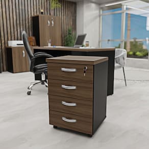 Peso suportado (distribuído): 85kg (tampo). Acabamento: Finish Foil Ambiente Principal: Escritório Complexidade da Montagem: Baixa: pode ser montado por uma pessoa sozinha Cor: Nogal / Preto Cor do Produto: Nogal / Preto Escala de Brilho: Fosco Manual de Montagem e Instalação: https://product-hub-prd.madeiramadeira.com.br/971462/documents/a0baa89e-3a0f-4413-9475-bd03047895272582010525617338290960596.pdf Marca: Netmobil Material Principal: MDP Necessita Montagem: Sim Origem do Produto: Nacional Peso: 123 kg Possui Armários: 02 Possui Balcão: Não Possui Cadeira: Não Possui Estante: Não Possui Gavetas: 04 Possui Gaveteiro: 01 Possui Mesa de Reunião: 01 Possui Portas: 04 Possui Prateleiras: 04 Recomendações de Uso, Manutenção e Limpeza: Recomendamos que o móvel não seja exposto a excesso de água ou produtos de limpeza agressivos. A limpeza pode ser feita com um pano de flanela levemente umedecido em álcool. Sistema de Montagem: Necessita Montagem Tipo de Conjunto de Escritório: Escrivaninha, Armário e Gaveteiro