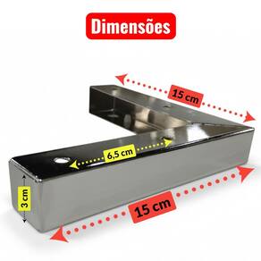 O Pé Cantoneira Cromado 3x15x15 cm é perfeito para dar um toque moderno e reforçado aos seus móveis. Fabricado em aço carbono cromado, oferece alta resistência, excelente acabamento e fixação segura. Ideal para sofás, poltronas, racks, estofados, recamiers e móveis planejados.