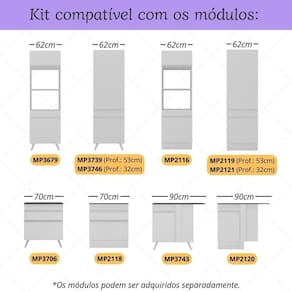 Compatível com: Paneleiros 62cm Veneza (Referências: MP3679, MP3739, MP3746, MP2116, MP2119 e MP2121). Balcões 70cm Veneza (Referências: MP3706 e MP2118). Balcões de Canto 90cm Veneza (Referências: MP3743 e MP2120).