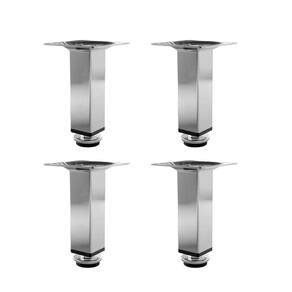 Kit 4 Pés Para Móveis Regulável Quadrado Cromado 8cm Kit com 4 Pés para Móveis - Design Quadrado e Cromado