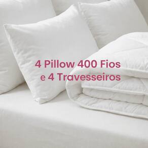 Kit 4 Pillow, Capa e Protetor de Colchão Casa Dona 400 Fios Percal Hipoalérgico Super Macio Mais 4 Travesseiros