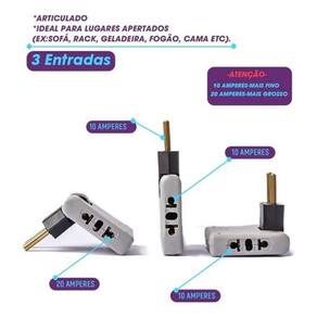 Kit 4 pino adaptador benjamin t articulado 3 saídas eletroplas eletrico v-07 v-06 Com este produto você irá economizar espaço atrás de estantes e racks, plugue até 3 equipamentos de uma vez, aceita equipamentos com 3 pinos 10a.