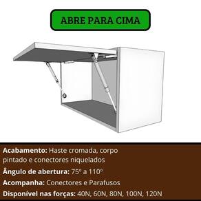 Especificações Técnicas: Material: Aço reforçado e plástico de alta durabilidade. Acabamento: Haste cromada, corpo pintado, conectores niquelados. Não necessita lubrificação. fácil instalação com alinhamento preciso. prolonga a vida útil dos móveis com fechamento silencioso. moderniza ambientes com um toque funcional e sofisticado.