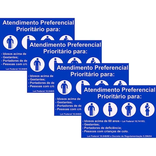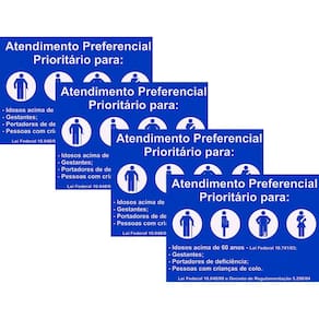 Especificação do produto: Material: PVC Medidas: 30cm X 20cm Fixação: adesivo, pregos ou parafusos Texto: ATENDIMENTO PREFERENCIAL Quantidade: 1 Unidade