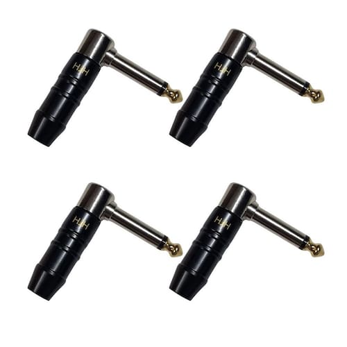 Kit 4 Plug P10 Macho Mono em L Preto Cromado 90º Profissional HJH Solda fácil Ótimo acabamento e durabilidade