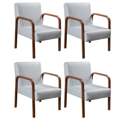 Kit 4 Poltronas Anita Conjunto Cadeiras Moderna Braço Madeira Branco