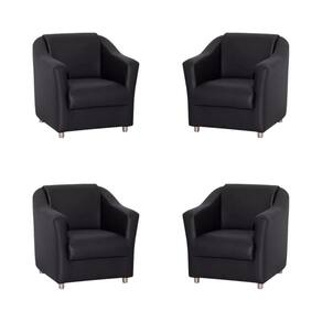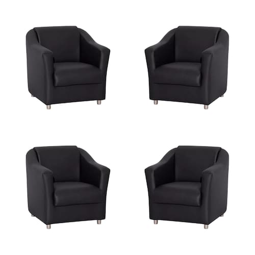Kit 4 Poltronas Bia Decorativa Reforçada Recepção Clinica Salão Sala De Estar Courino - Preto