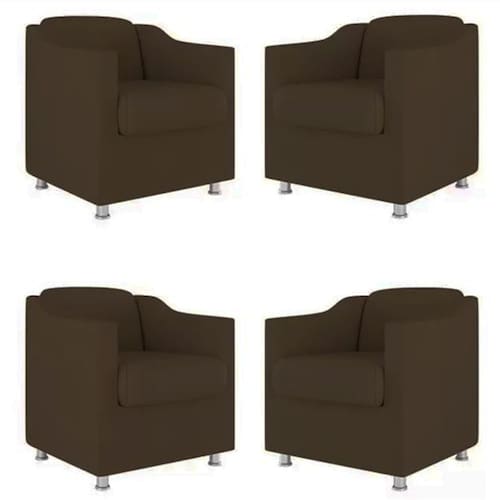Kit 4 Poltronas Bia Decorativa Reforçada Recepção Clinica Salão Sala De Estar Suede - Marrom