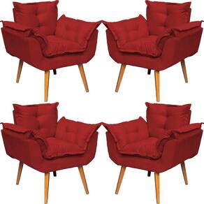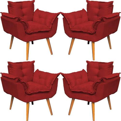 Kit 4 Poltronas Decorativa Para Sala Alice Suede Cores Pé Trapézio 30cm Castanho - Suede