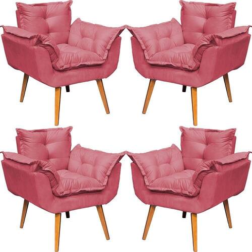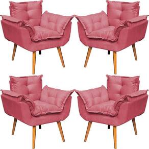 Kit 4 Poltronas Decorativa Para Sala Alice Suede Cores Pé Trapézio 30cm Castanho - Suede