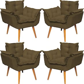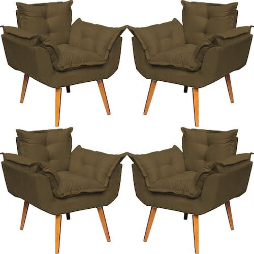 KIT 4 POLTRONAS ALICE SUEDE CORES PÉ TRAPÉZIO 30CM CASTANHO