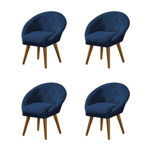 AS IMAGENS SÃO MERAMENTE ILUSTRATIVAS E PODEM SOFRER VARIAÇÕES DE COR E PEQUENOS DETALHES DE ACORDO COM O SEU MONITOR, ILUMINAÇÃO DO AMBIENTE E ATÉ MESMO A SUA PERCEPÇÃO 4 Poltronas Decorativa Canastra Estofada Veludo Azul Marinho PÃs Palito em Madeira MaciÃa