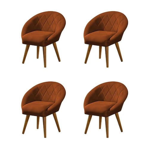 AS IMAGENS SÃO MERAMENTE ILUSTRATIVAS E PODEM SOFRER VARIAÇÕES DE COR E PEQUENOS DETALHES DE ACORDO COM O SEU MONITOR, ILUMINAÇÃO DO AMBIENTE E ATÉ MESMO A SUA PERCEPÇÃO 4 Poltronas Decorativa Canastra Estofada Veludo Laranja Terracota PÃs Palito em Madeira MaciÃa